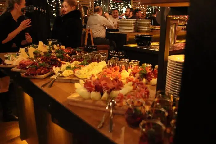Unser Abend begann um 18 Uhr im Braugasthaus „Dolden Mädel“ in Stralsund. Nachdem wir alle zum Team-Foto zusammenstanden, folgte im Gastraum eine kurze Rede und Buffet-Eröffnung durch unsere Geschäftsführer Frank, Lars und Gerold. Der Abend war locker und lustig und da wir in den letzten Monaten personell stark gewachsen sind, eine hervorragende Gelegenheit, die neuen Kollegen besser kennenzulernen.