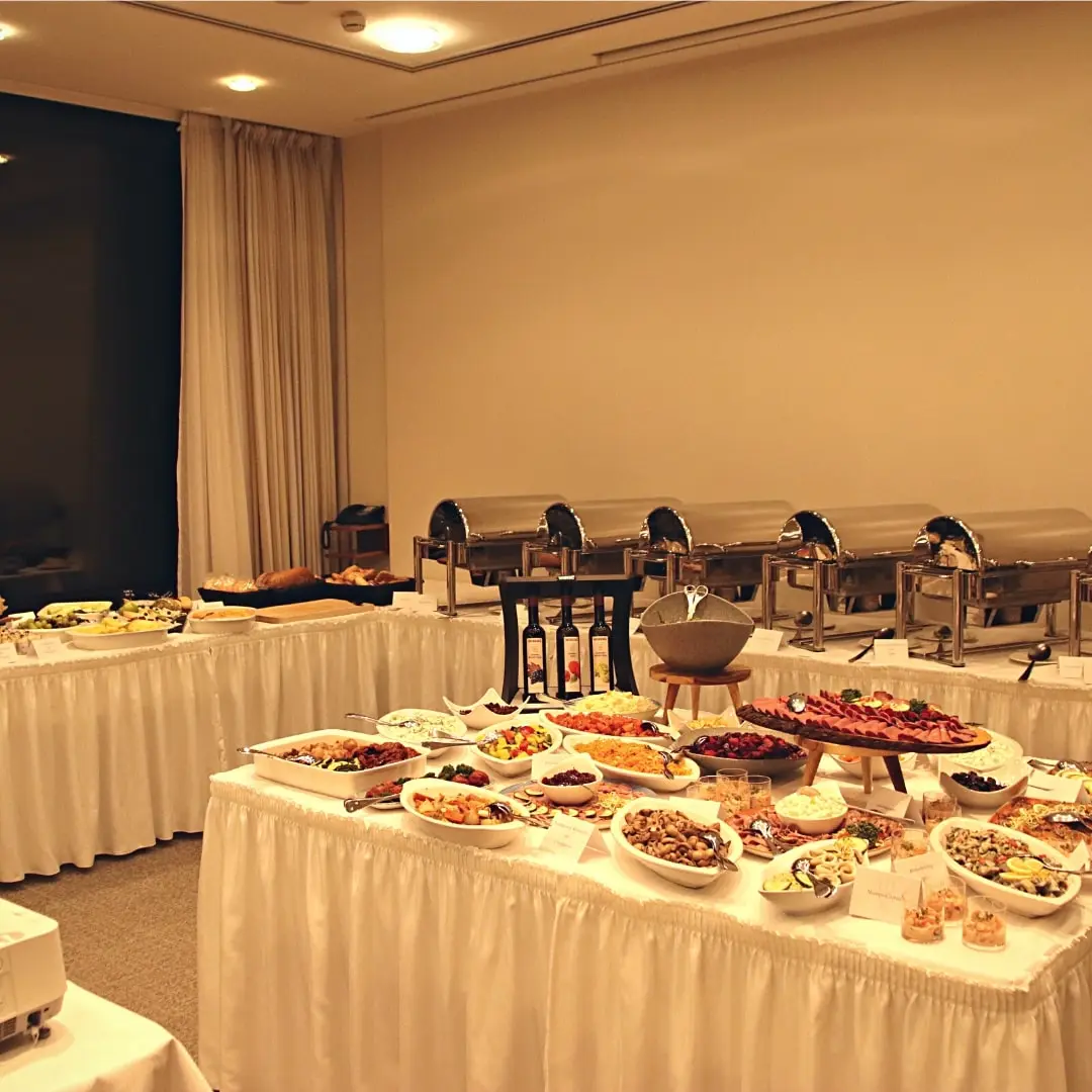 Nachdem wir zurück an Land gespült wurden, sahen wir uns zu Fuß mit einem kleinen Rundgang Warnemünde genauer an. Um 18 Uhr waren wir zum Abendessen im Hotel Neptun in Warnemünde geladen. Das bestückte Buffet wurde eröffnet! Die Auswahl stand zwischen einer Vielfalt an Hauptgerichten sowie etwas Süßem für danach.